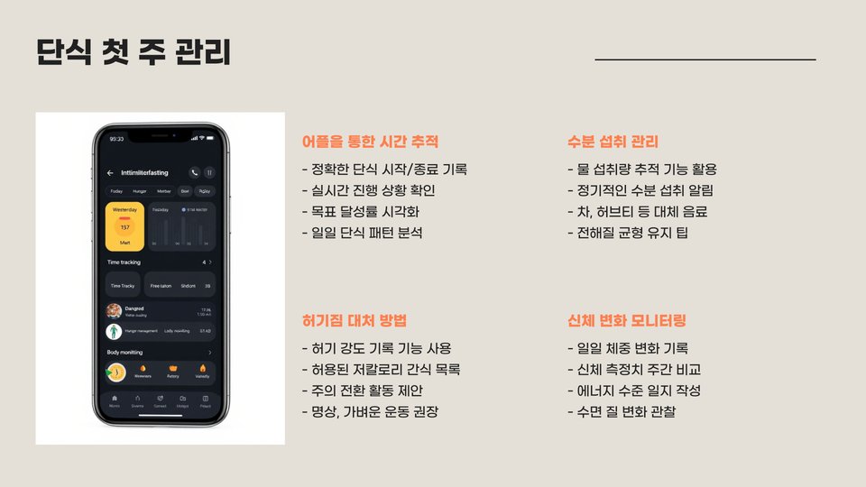 중요 팁: 간헐적 단식 어플을 사용할 때는 자신의 신체 상태를 잘 이해하고, 필요시 전문가의 조언을 받는 것이 중요합니다. 간헐적 단식이 모든 사람에게 적합하지 않을 수 있기 때문입니다.