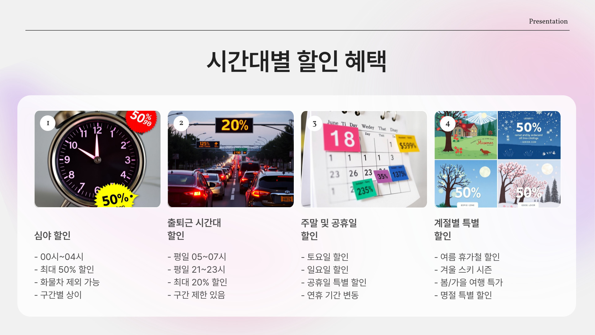 통행 시간 할인 | 주말 및 심야 시간 할인 |