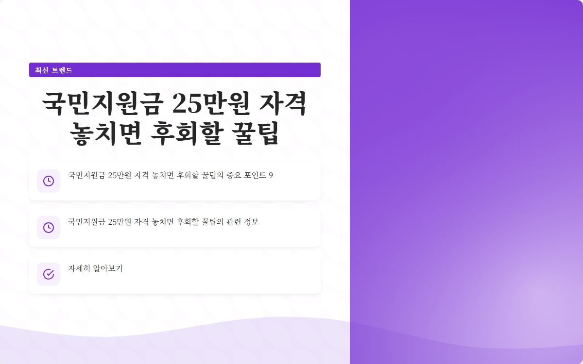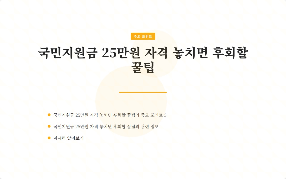 많은 분들이 민생회복지원금 25만원의 중요성을 알고 있지만, 실제로 자격 조건을 놓치고 있는 경우가 많습니다. 이 글을 통해 자격 요건을 명확히 이해하고, 지원금을 받을 수 있는 꿀팁을 제공하겠습니다.