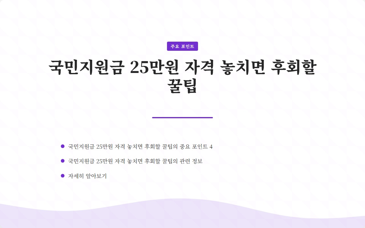 많은 분들이 민생회복지원금 25만원의 중요성을 알고 있지만, 실제로 자격 조건을 놓치고 있는 경우가 많습니다. 이 글을 통해 자격 요건을 명확히 이해하고, 지원금을 받을 수 있는 꿀팁을 제공하겠습니다.