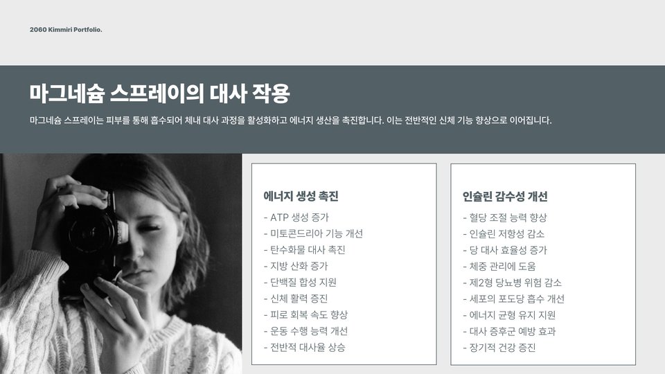 Tags: 마그네슘, 마그네슘 스프레이, 근육통 완화, 피부 건강, 마그네슘 효능, 운동 후 회복, 부작용 없는 스프레이, 건강, 미네랄, 스프레이 사용법