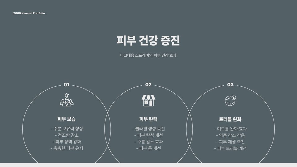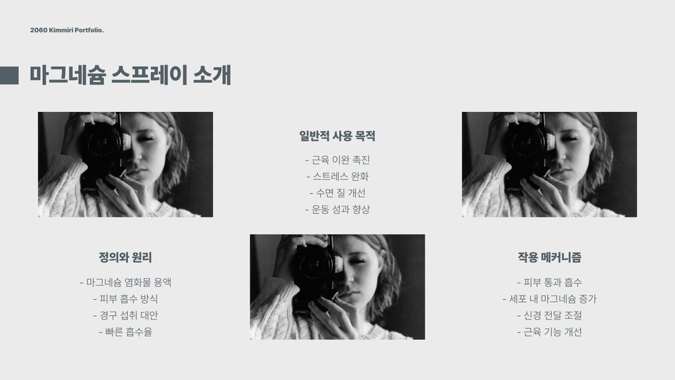 마그네슘은 우리 몸에서 필수적으로 필요로 하는 미네랄 중 하나로, 특히 근육의 기능과 이완에 중요한 역할을 합니다. 마그네슘 스프레이는 이러한 마그네슘을 피부에 직접 분사하여 효과를 극대화할 수 있는 제품입니다. 일반적으로 마그네슘은 식품이나 보충제를 통해 섭취하는 것이 일반적이지만, 스프레이 형태로 사용하면 빠르게 체내에 흡수될 수 있습니다. 특히 운동 후 근육의 피로를 줄이려는 많은 운동인들이 애용하고 있습니다.