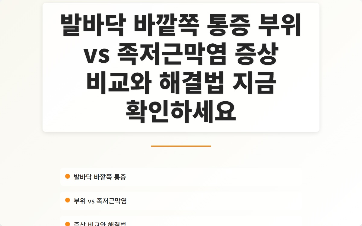 발바닥 바깥쪽 통증 부위 vs 족저근막염 증상 비교와 해결법 지금 확인하세요