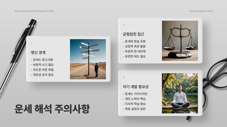 - 운세를 긍정적인 자기계발의 기회로 활용하세요.