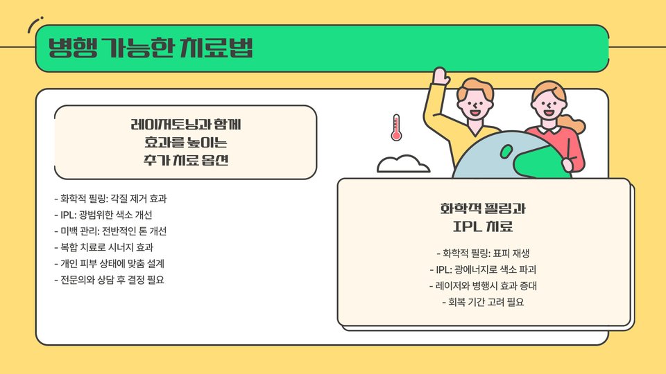 색소침착 레이저 토닝은 효과적인 피부 관리 방법 중 하나입니다. 치료의 효과와 가격을 충분히 이해하고, 전문가와 상담하여 적절한 선택을 하는 것이 중요합니다. 피부의 건강과 아름다움을 위해 오늘 바로 예약해보세요!