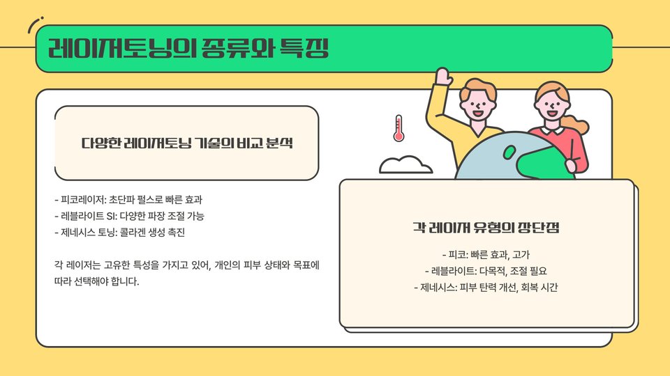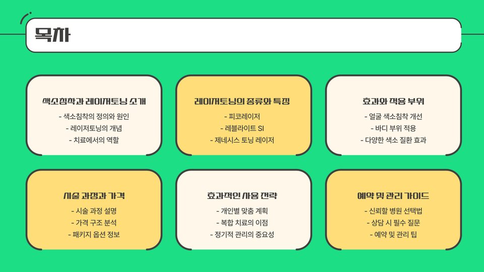 색소침착 레이저 토닝은 피부의 색소 문제를 해결하기 위한 효과적인 방법으로 많은 사람들에게 인기 있는 치료법입니다. 특히 여드름 자국이나 기미와 같은 색소침착 문제로 고민하는 이들에게 매우 유용합니다. 그러나 치료를 결정하기 전에 가격과 예약 방법에 대해 사전에 충분히 알아두는 것이 중요합니다. 이 글에서는 이러한 정보를 포함하여 효과적으로 레이저 토닝을 활용하는 방법을 안내하겠습니다.