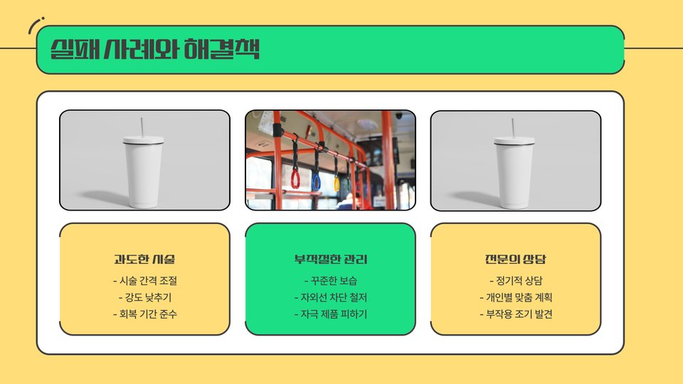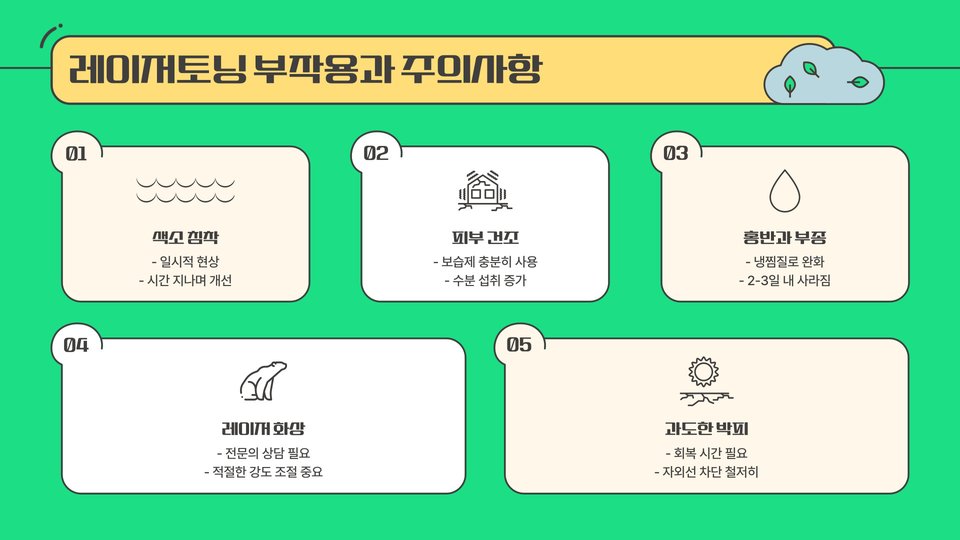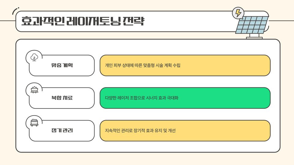 색소침착 레이저 토닝은 단순한 치료가 아닙니다. 효과적으로 사용하기 위해서는 몇 가지 팁을 알아두어야 합니다. 첫 번째로, 치료 전에 전문가와 상담을 통해 자신의 피부 상태를 정확히 진단받아야 합니다. 피부 전문의와의 상담을 통해 알레르기 반응이나 특정 피부 문제에 대한 안내를 받을 수 있습니다.
