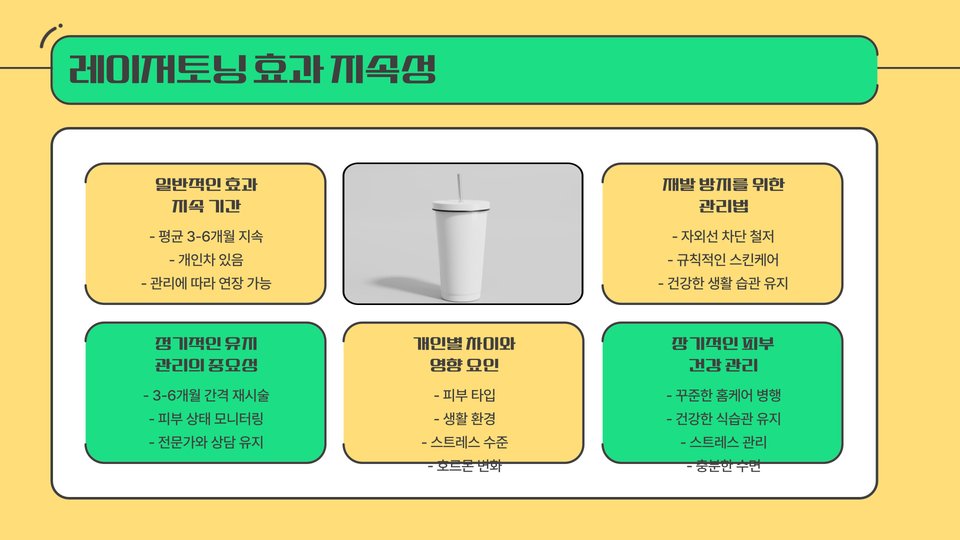 마지막으로, 시술 주기 역시 중요합니다. 일반적으로는 4주 간격으로 3~5회 시술을 받는 것이 효과적입니다. 그러나 개인의 피부 상태에 따라 다를 수 있으므로, 이를 전문가와 상의하여 최적의 주기를 설정하는 것이 좋습니다.