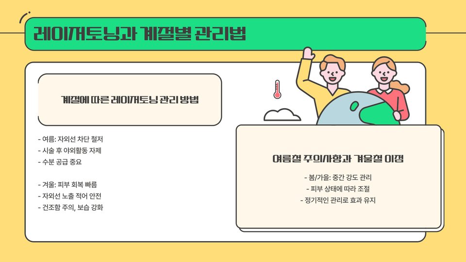 색소침착 레이저 토닝은 단순한 치료가 아닙니다. 효과적으로 사용하기 위해서는 몇 가지 팁을 알아두어야 합니다. 첫 번째로, 치료 전에 전문가와 상담을 통해 자신의 피부 상태를 정확히 진단받아야 합니다. 피부 전문의와의 상담을 통해 알레르기 반응이나 특정 피부 문제에 대한 안내를 받을 수 있습니다.