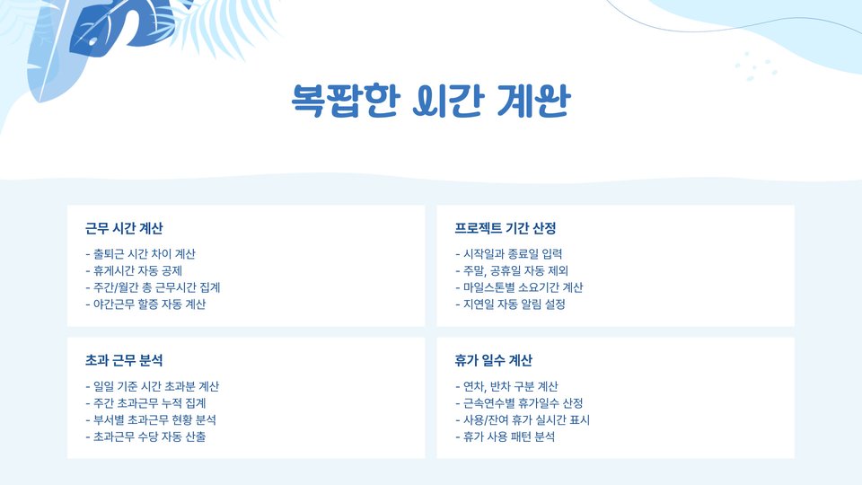 - 시간 데이터를 종합적으로 분석하고 보고할 수 있다.