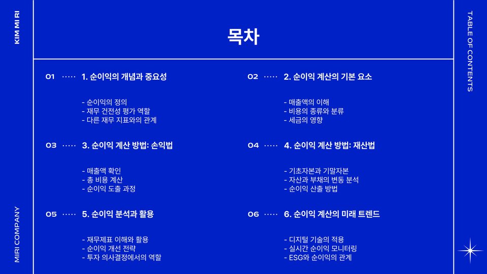 - 순이익은 기업의 재무 건전성을 나타내는 중요한 지표입니다.