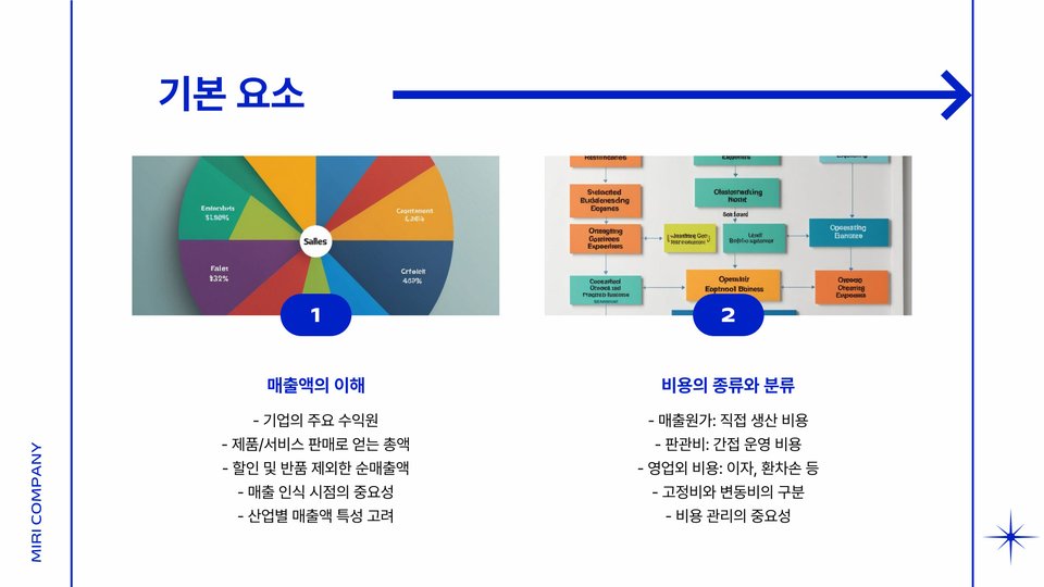- 총 비용 산출: 운영비, 인건비, 세금, 이자비용 등을 포함하여 기업이 발생한 모든 비용을 합산합니다.