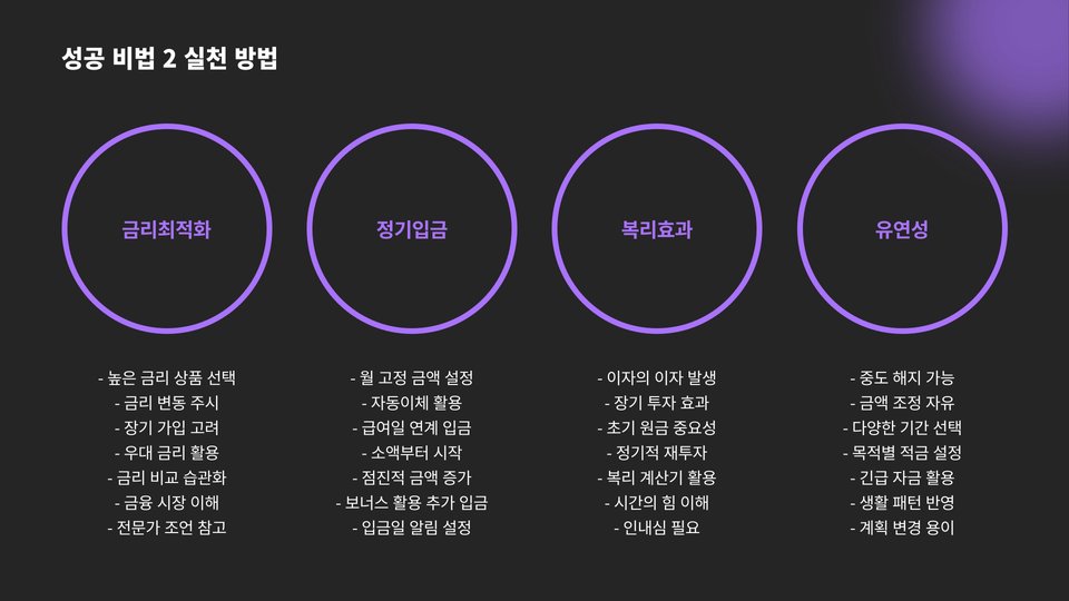 이러한 목표 설정은 금전적인 측면 뿐만 아니라, 개인의 성장에도 큰 도움이 됩니다. 자신이 설정한 목표를 달성하는 과정에서 성취감을 느끼고, 이를 통해 더 나은 금융 습관을 기를 수 있습니다.