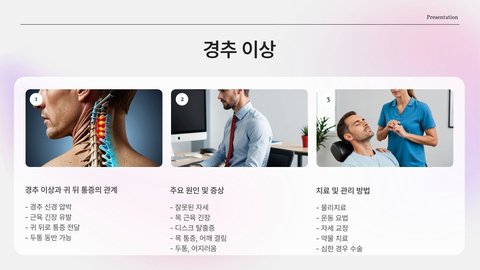 경추의 불균형 기준으로 물리 치료나 척추 교정 치료가 효과적이며, 신경통은 신경차단술 등이 도움이 될 수 있습니다.