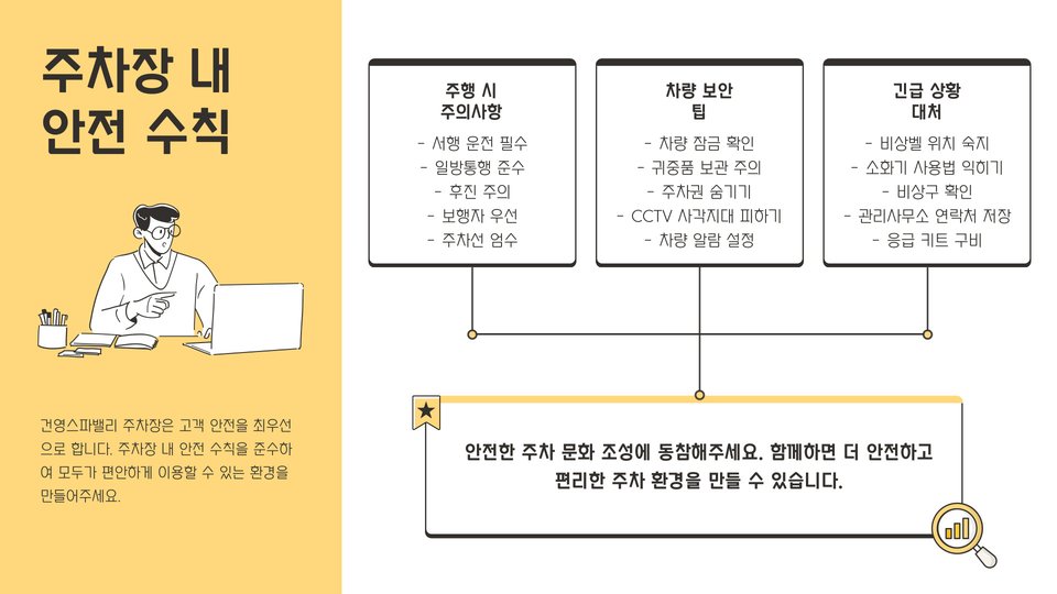 주말이나 공휴일에 건영스파밸리를 방문할 계획이라면, 사전 예약을 통해 주차 공간을 확보하는 것이 중요합니다. 현장에서 주차 공간을 찾으려고 애쓰는 것보다 미리 예약을 해두는 것이 훨씬 수월합니다. 특히 인기 있는 시간대는 금세 주차 공간이 매진되는 경우가 많기 때문에, 일찍 예약하는 것이 좋습니다.