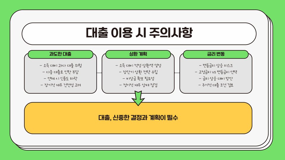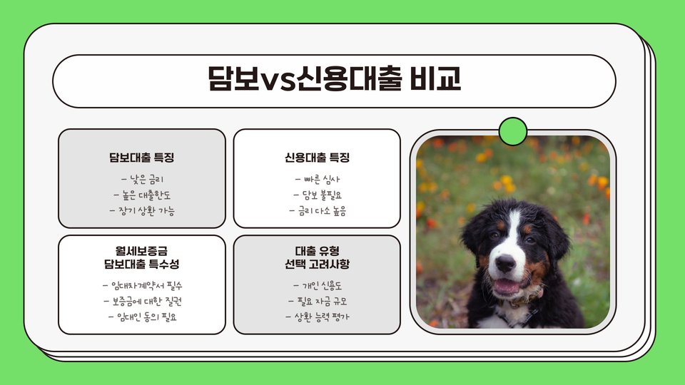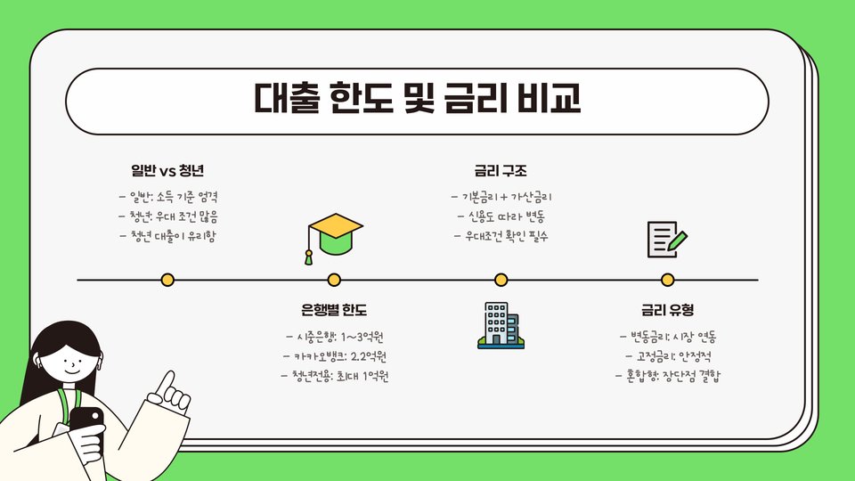 - 소득 증명이 필요하며, 고정 수입이 있는 경우 대출이 유리하다.