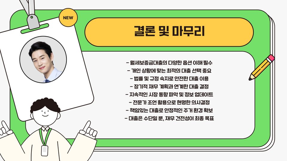 월세보증금대출은 많은 세입자들에게 유용한 금융 상품이 될 수 있습니다. 그러나 대출 조건과 절차를 정확히 이해하는 것이 중요합니다. 이 글을 통해 월세보증금대출에 대한 이해를 높이고, 필요한 정보를 얻길 바랍니다. 주의 깊게 조건을 확인하고, 신중하게 대출을 신청하여 보다 나은 주거 환경을 마련할 수 있기를 바랍니다.