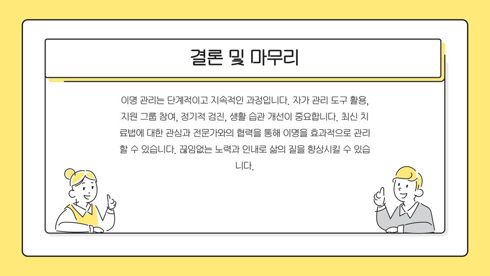 결국, 이명은 완전히 치료할 수 없는 경우가 많지만, 적절한 관리와 긍정적인 태도로 충분히 극복할 수 있습니다. 이명과의 건강한 관계를 유지하는 것이 중요합니다.