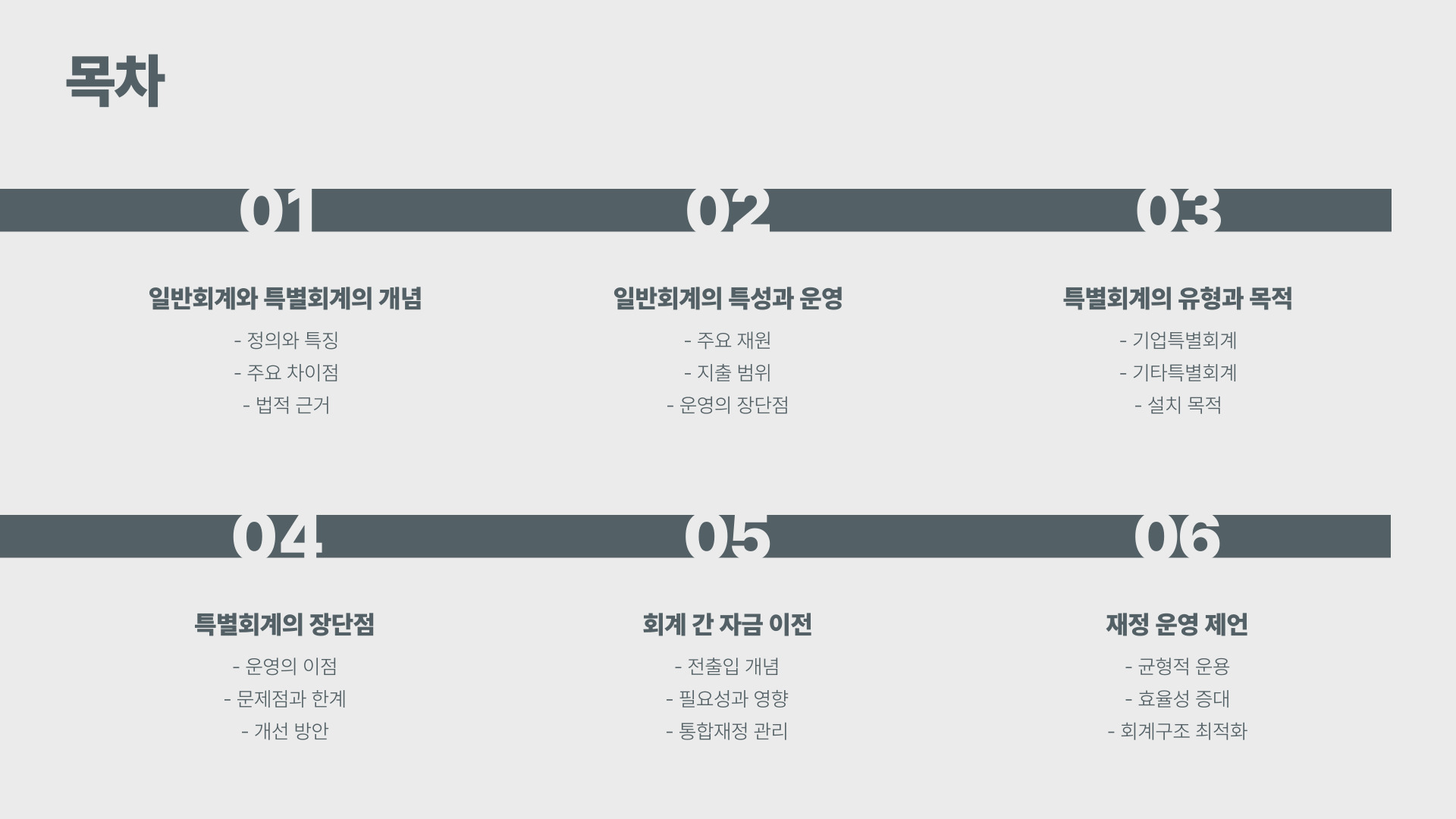 - 특별회계는 특정 목적을 위해 따로 운영됩니다.
