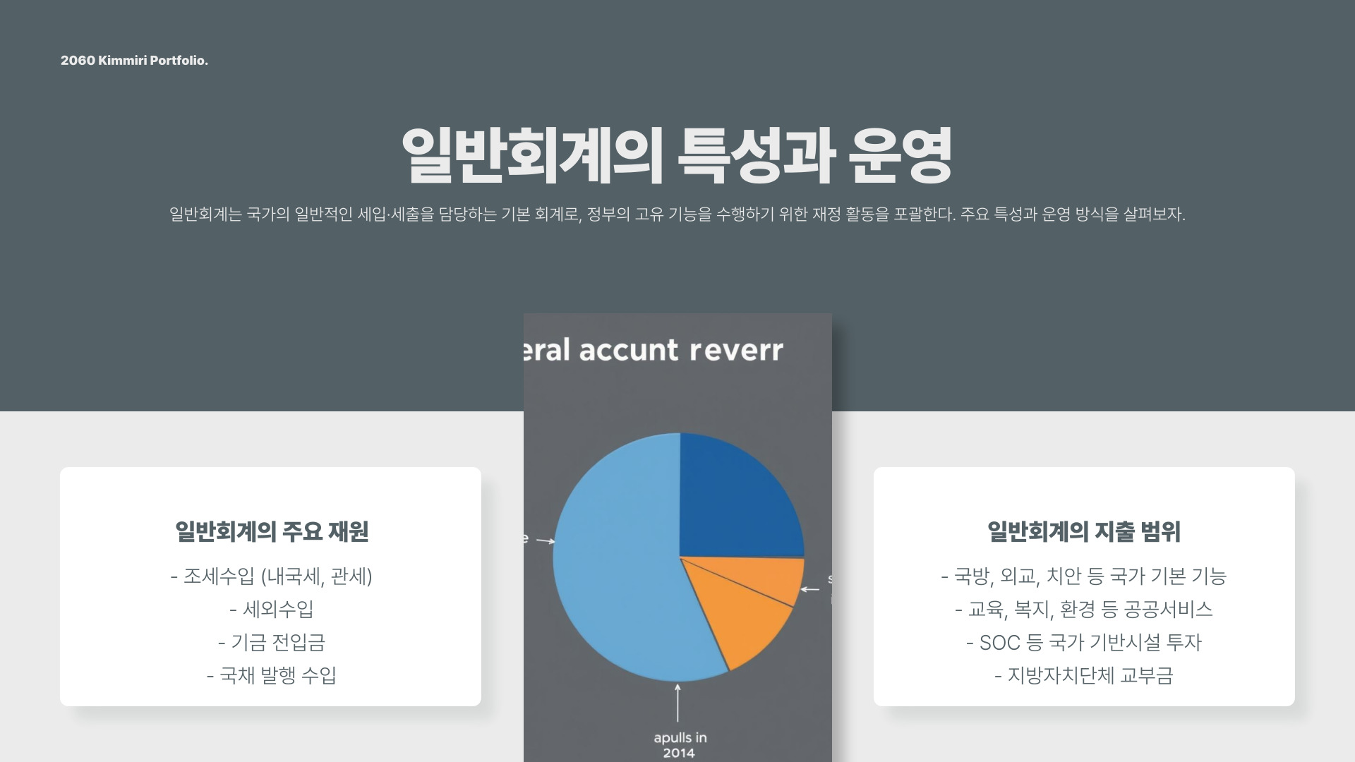 - 일반회계는 국가의 모든 재정 활동을 포함합니다.