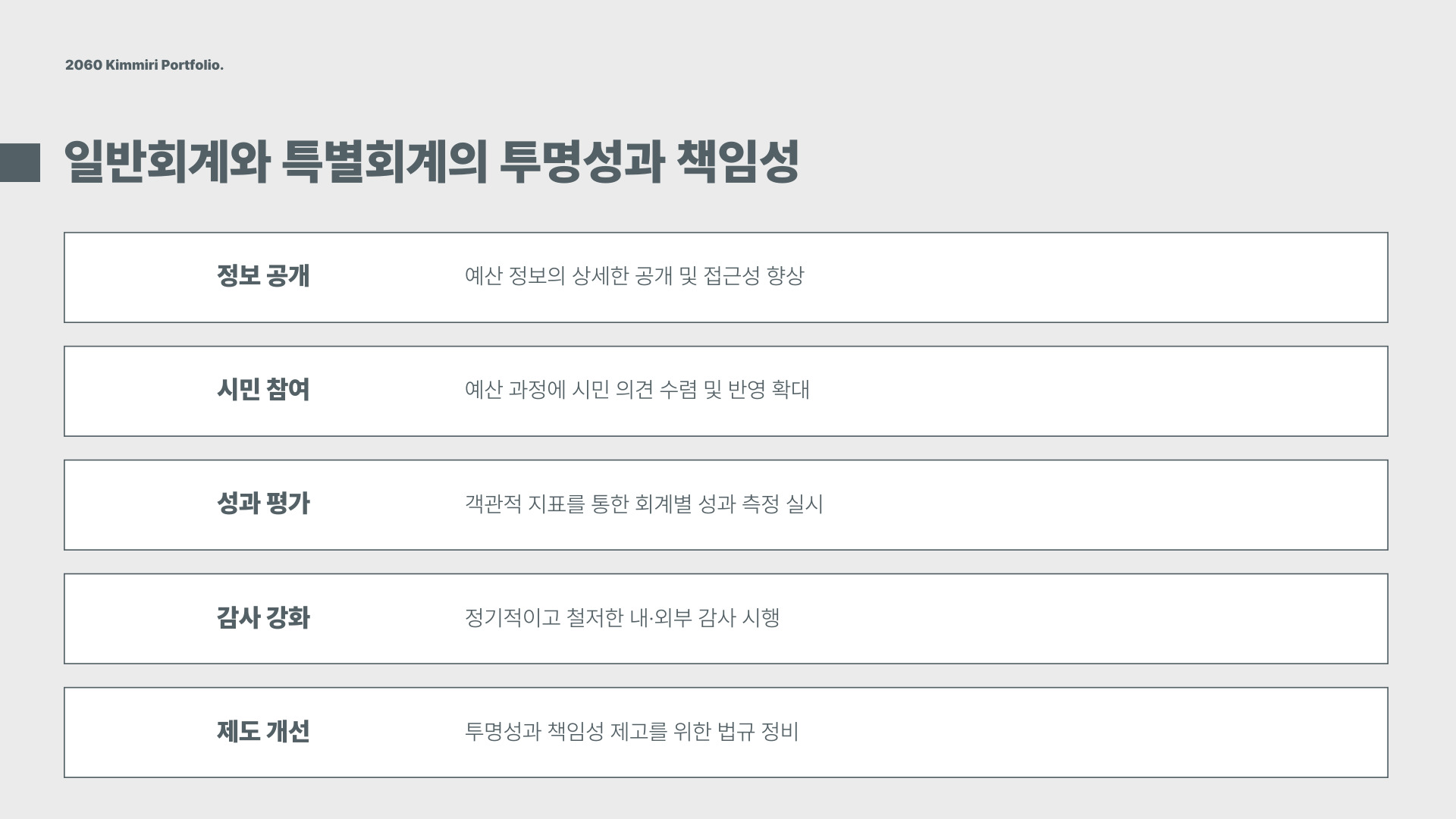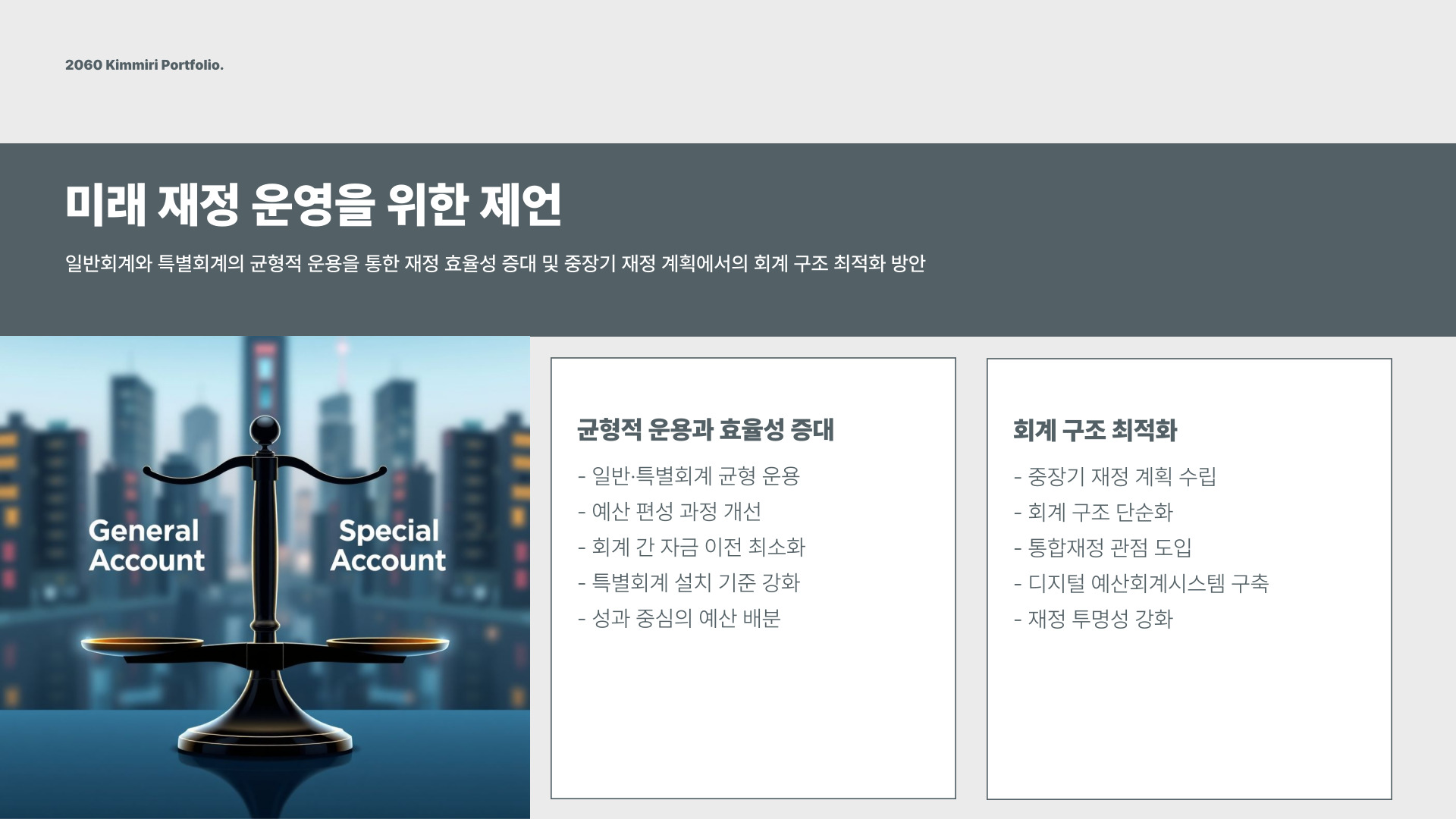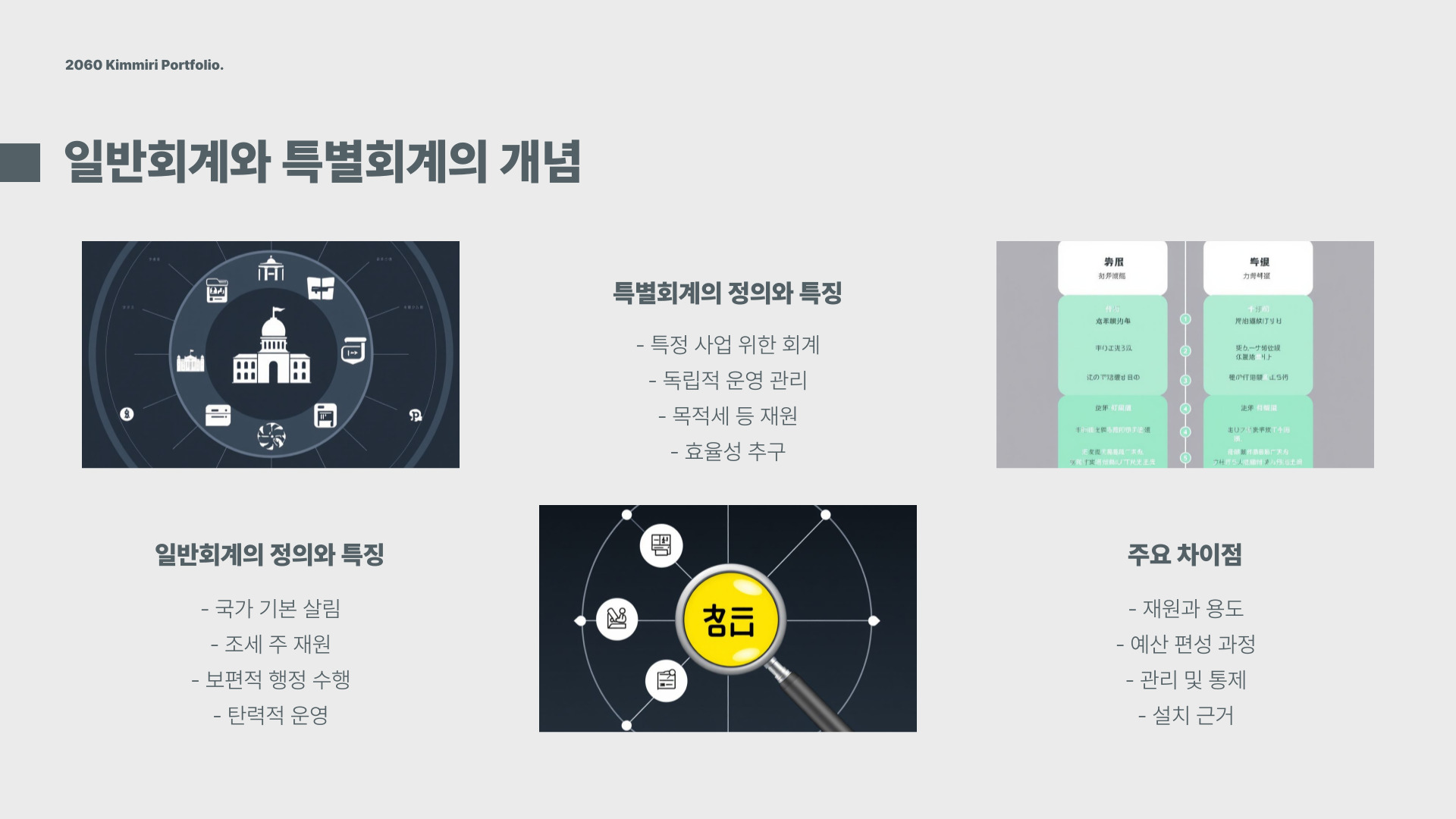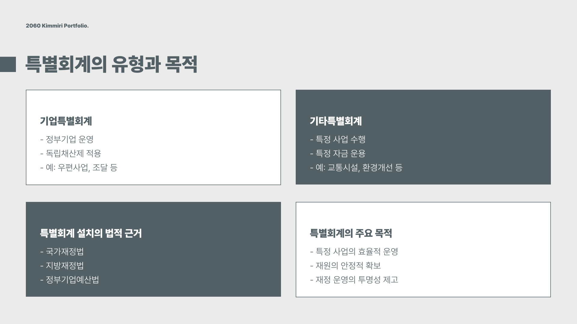 - 특별회계는 특정 목적을 위해 따로 운영됩니다.