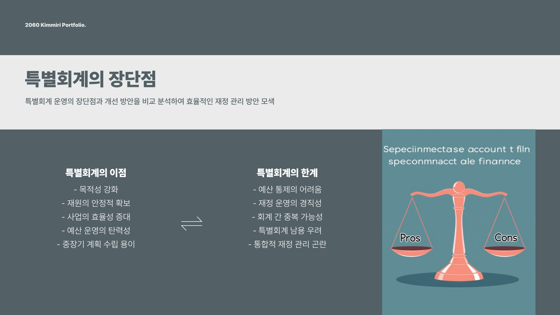 - 특별회계는 특정 목적을 위한 자금 관리에 유리