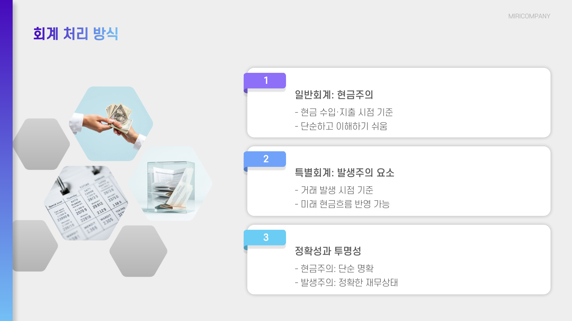 - 두 회계 시스템은 서로 보완적입니다.