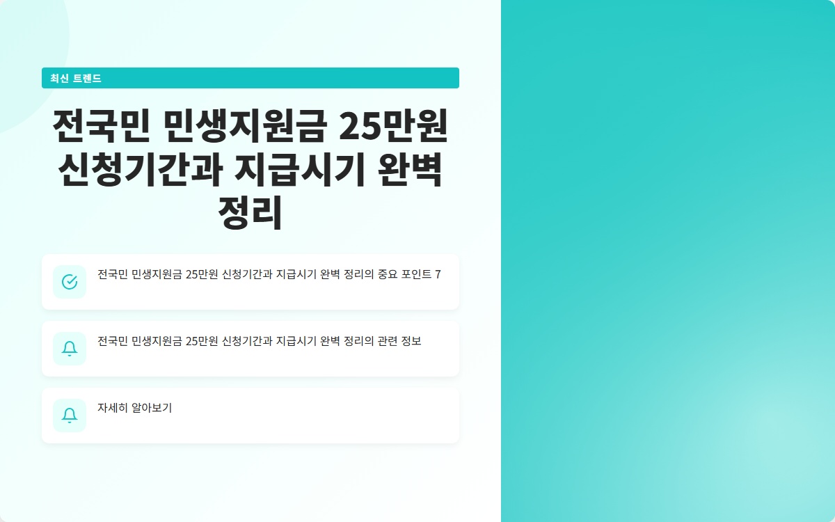 전국민 민생지원금 25만원은 경제적 어려움을 겪고 있는 국민들에게 큰 도움이 될 것으로 기대됩니다. 신청 기간을 놓치지 말고, 필요한 정보를 미리 확인하세요!