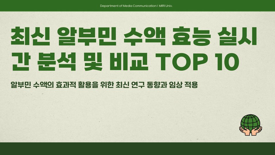 알부민은 인체 내에서 중요한 역할을 하는 단백질로, 혈액의 주요 구성 성분 중 하나입니다. 알부민 효능은 다양하며, 최근 연구에 따르면 알부민 수액은 여러 가지 의학적 목적을 위해 사용되고 있습니다. 이 글에서는 최신 알부민 수액의 효능을 분석하고, 상위 10가지 효능을 비교해 보도록 하겠습니다.