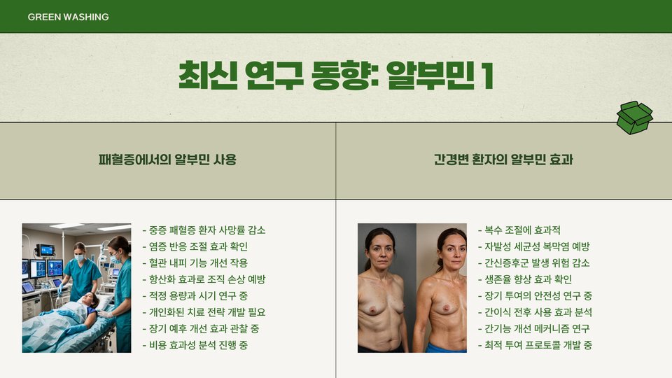 최근의 연구에 따르면, 알부민 수액은 수술 후 회복을 돕는 데 매우 효과적이라는 결과가 나왔습니다. 최신 연구에서는 알부민이 혈액의 점도를 증가시키고, 혈압을 안정화하는데 도움을 준다고 보고되었습니다. 이는 특히 대량 출혈을 경험한 환자에게 큰 도움이 됩니다.