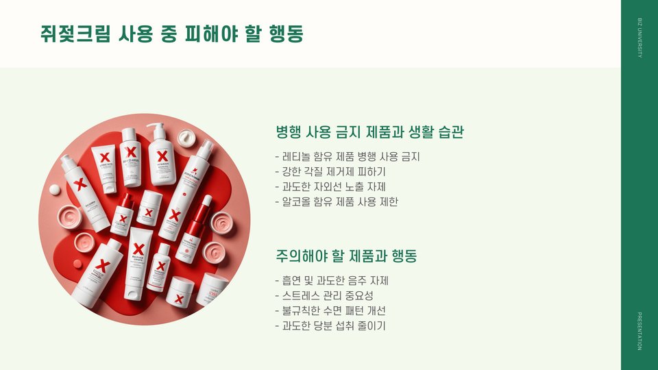 쥐젖크림을 사용할 때는 몇 가지 주의사항이 있습니다. 먼저, 사용 전에는 반드시 패치 테스트를 통해 알레르기 반응을 확인해야 합니다. 또한, 크림을 사용할 때는 과도한 양을 사용하지 않도록 주의해야 하며, 정해진 사용법을 준수하는 것이 중요합니다.