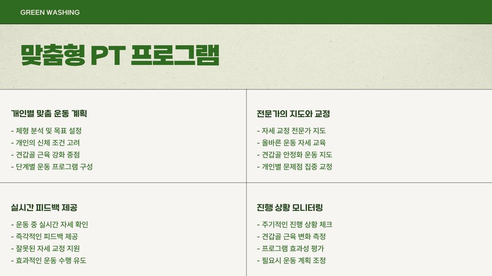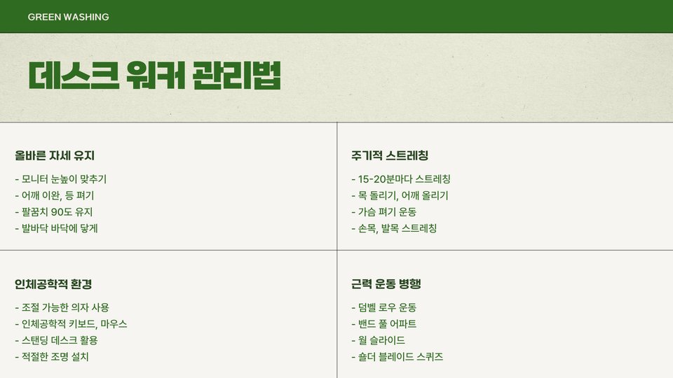 - 정기적으로 자세 점검과 스트레칭이 필요합니다.