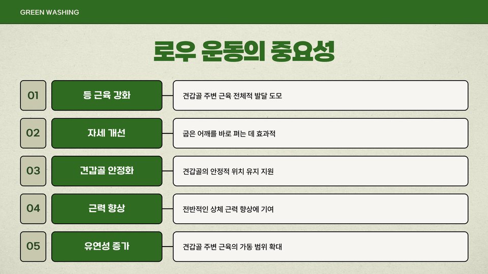 예를 들어, 덤벨을 이용한 어깨 프레스를 통해 견갑골 주변 근육을 직접적으로 강화할 수 있습니다. 또한, 밴드를 이용한 외회전 운동은 어깨의 회전 근육을 강화하여 부상의 위험을 줄이는 데 도움을 줍니다. 이러한 근력 운동은 주 2-3회 실시하는 것이 좋습니다.