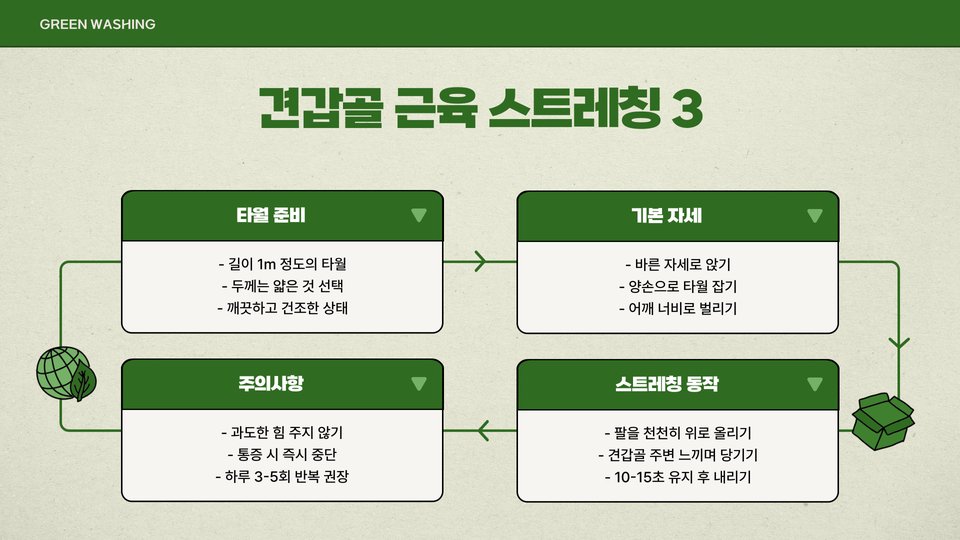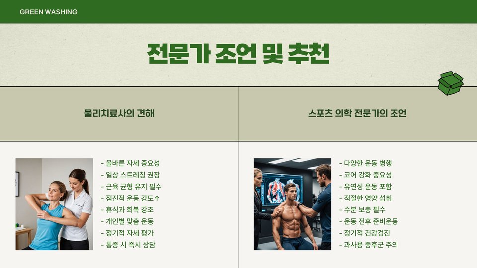 - 스트레칭, 근력 운동, 자세 교정, 심리적 안정이 중요합니다.