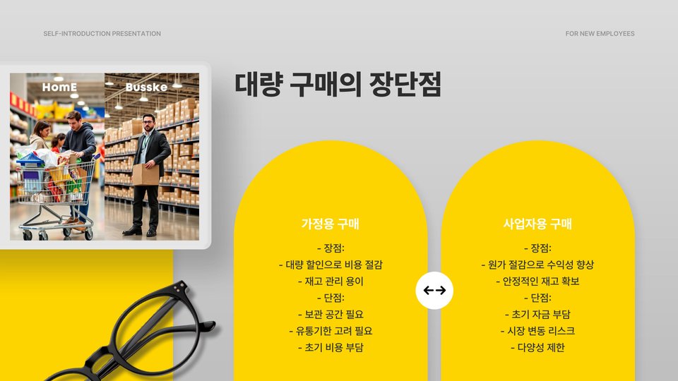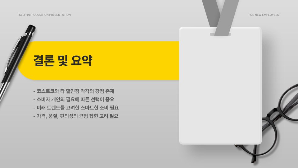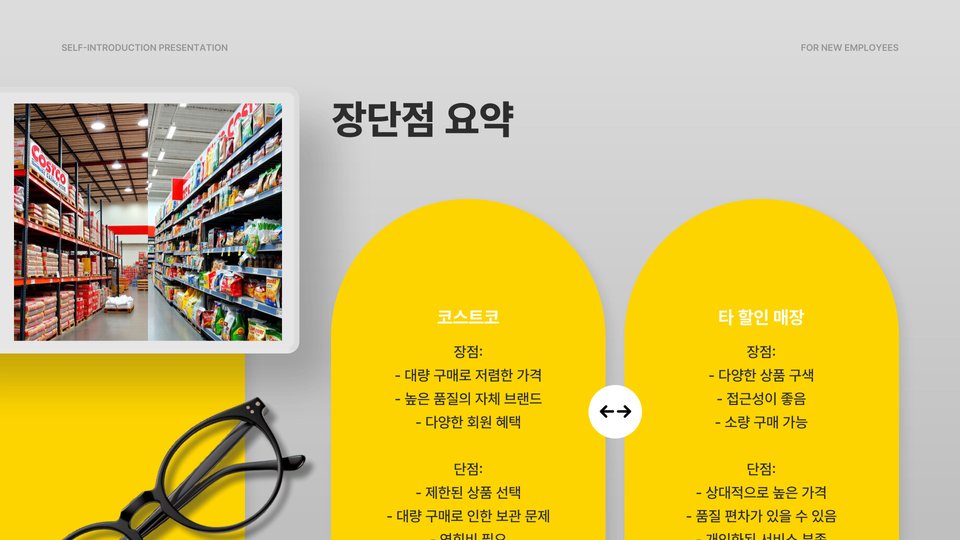 - 코스트코는 대량 구매 시 유리하고 다양한 제품을 보유하고 있음.