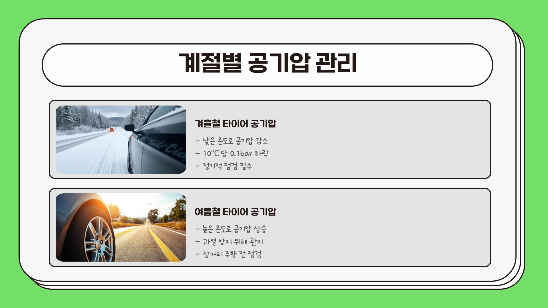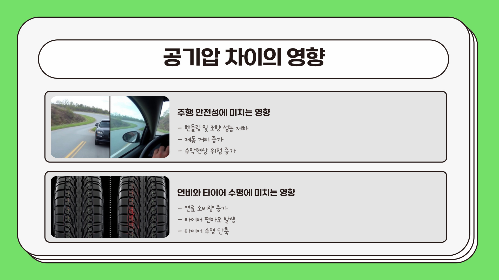 - 공기압의 차이는 사고의 위험을 증가시킬 수 있다.