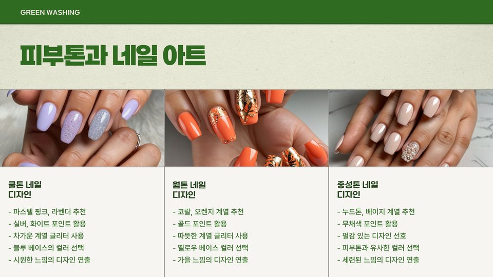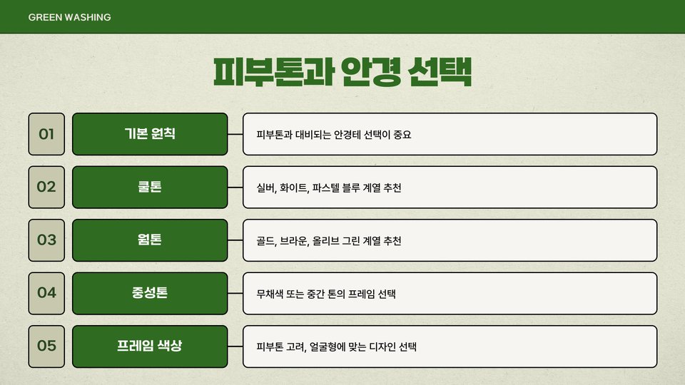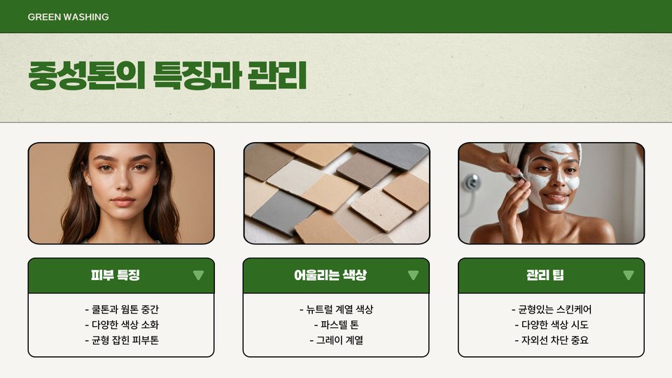 - 뉴트럴톤: 다양한 색상 활용 가능, 중간 색조의 제품 추천