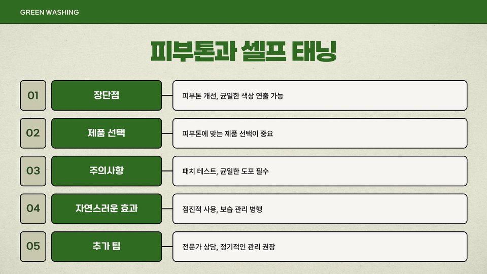 마지막으로, 피부톤에 맞는 메이크업뿐만 아니라, 뷰티케어 제품 선택에도 주의를 기울여야 합니다. 각 피부톤에 따라 피부가 민감해질 수 있는 성분이 다르기 때문에, 성분표를 잘 읽고 제품을 선택하는 것이 신중한 접근법임을 잊지 마세요.