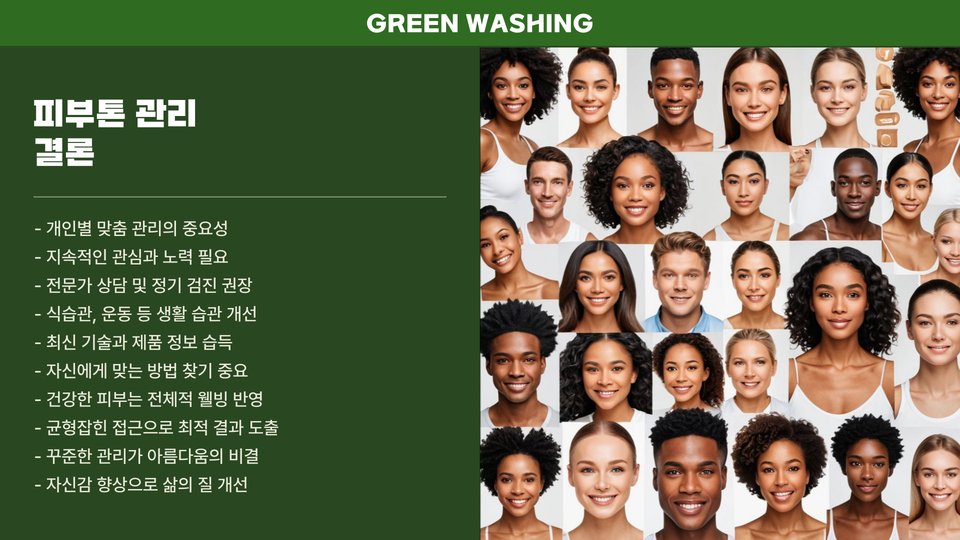 피부톤에 대한 이해는 메이크업, 스타일 선택뿐만 아니라 피부 관리에도 중요한 영향을 미칩니다. 피부톤에 맞는 제품 선택과 색상 조합을 통해 자신감 있는 외모를 연출할 수 있도록 노력해보세요.