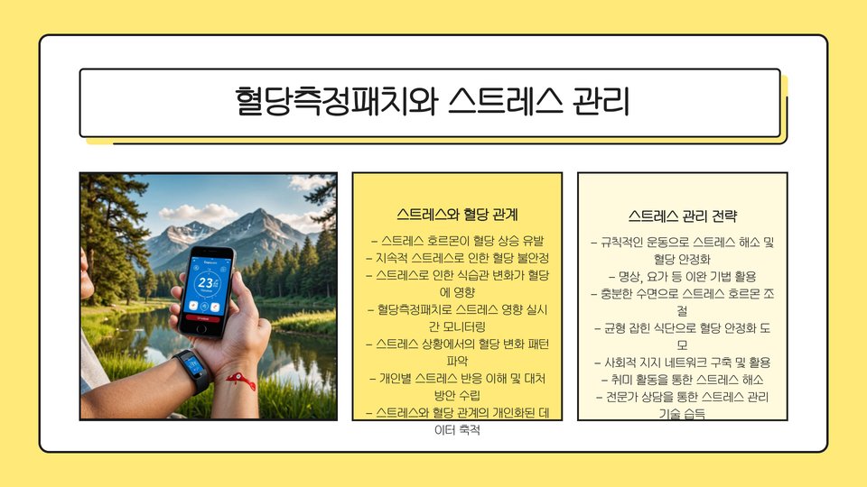 혈당패치는 피부에 부착하여 비침습적으로 혈당을 측정하는 장치입니다. 전통적인 혈당 측정 방법은 손가락을 찔러 혈액을 채취해야 했으나, 혈당패치는 이러한 불편함을 해소합니다. 사용자는 패치를 부착한 후, 스마트폰 앱을 통해 실시간으로 혈당 수치를 확인할 수 있습니다. 이를 통해 일상생활 속에서 혈당 변화를 즉시 확인할 수 있는 장점이 있습니다.