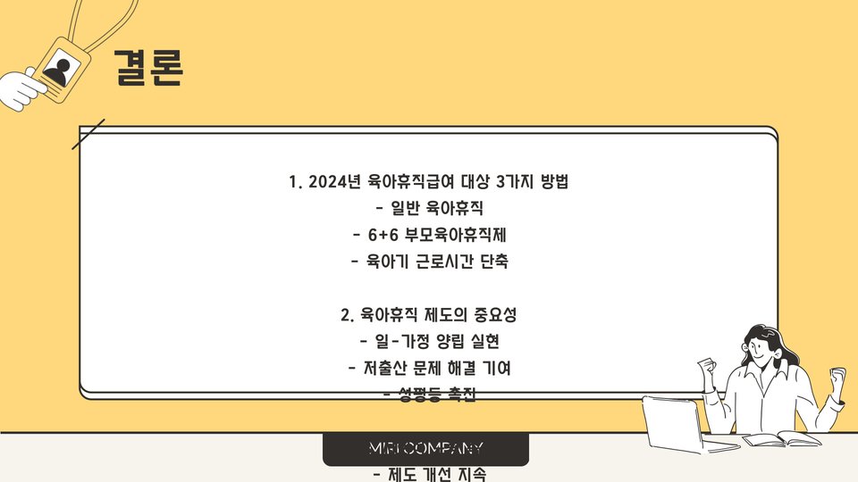 2024년 육아휴직급여 혜택이 확대된 만큼, 더 많은 부모가 적극적으로 육아에 참여할 수 있는 사회적 환경이 조성되기를 기대합니다. 이러한 제도의 변화는 부모의 경력 단절을 방지하고, 육아로 인해 발생할 수 있는 다양한 어려움을 완화하는 데 큰 도움이 될 것입니다.