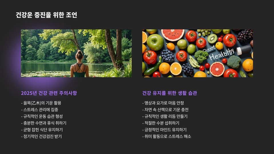 | 띠별 운세 확인 | 자신의 띠에 맞는 운세를 확인하여 연간 계획 세우기 |