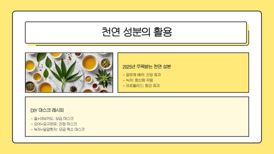 2025년에는 피부톤 개선을 위한 다양한 트렌드가 등장하고 있습니다. 특히, 자연 친화적인 성분을 활용한 스킨케어가 주목받고 있습니다. 이는 피부에 부담을 주지 않으며, 건강한 피부를 유지하는 데 도움을 줍니다. 예를 들어, 알로에베라나 녹차 추출물은 피부 진정과 보습에 효과적입니다. 이러한 성분을 포함한 제품이 시장에서 인기를 끌고 있습니다.