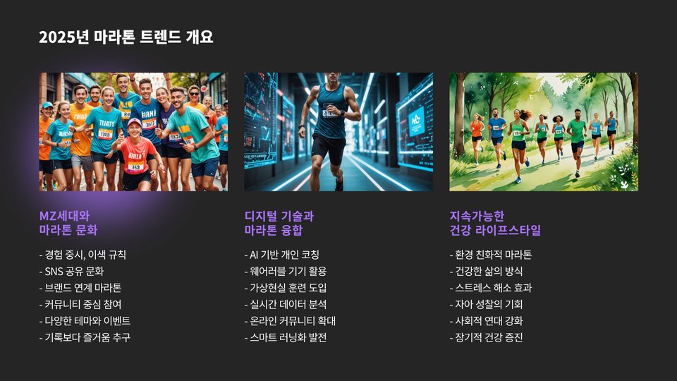 2025년의 마라톤 연습은 단순한 운동을 넘어 새로운 트렌드와 기술이 결합된 형태로 발전하고 있습니다. 10km 마라톤에 도전하기 위해서는 체계적인 훈련과 적절한 준비가 필요합니다. 이 블로그 포스트에서 다룬 내용들을 참고하여, 건강하고 의미 있는 마라톤 연습을 시작해 보세요. 여러분의 목표 달성을 응원합니다!
