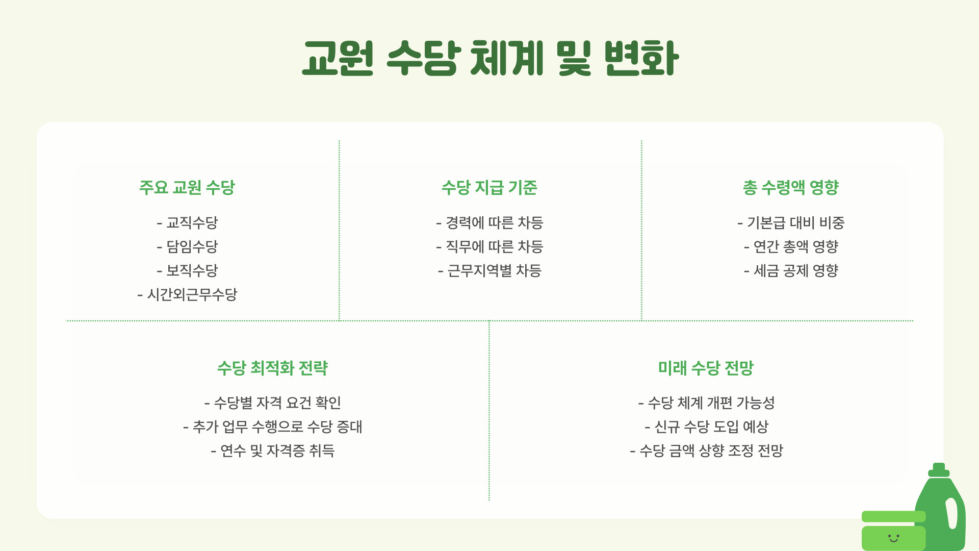 - 호봉은 교사의 경력과 급여에 큰 영향을 미친다.