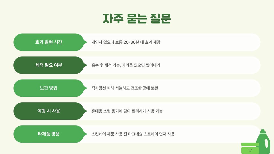 중요 팁: 마그네슘 스프레이를 사용하기 전에는 반드시 피부 반응을 확인하고, 필요 시 전문가와 상담하세요.