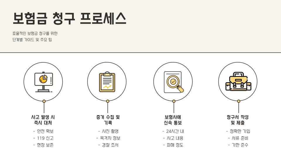 아울러, 보험금 청구 절차 또한 확인해 두어야 합니다. 보상 한도에 따라 각기 다른 처리 과정을 예측하고, 사건 발생 시 대처할 수 있도록 미리 준비해야 합니다.