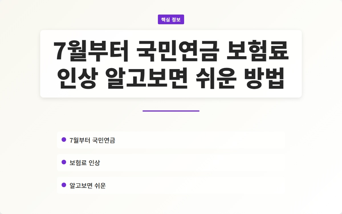 2025년 7월부터의 국민연금 보험료 인상은 몇 가지 요소로 나누어 볼 수 있습니다: