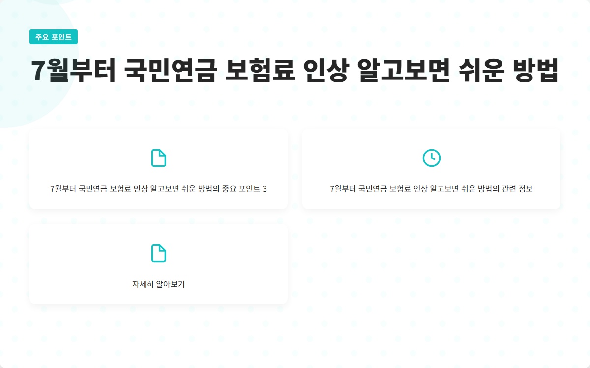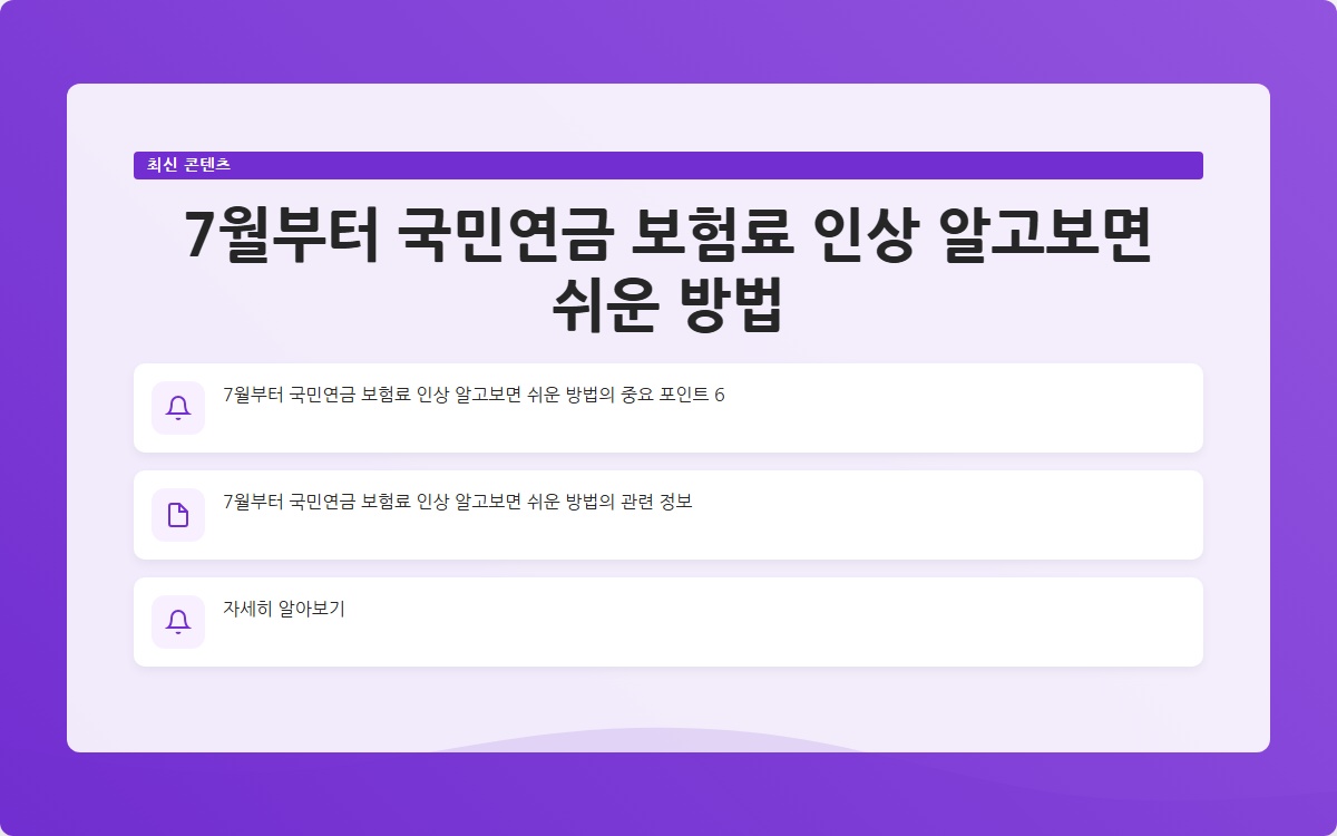 2025년 7월부터의 국민연금 보험료 인상은 몇 가지 요소로 나누어 볼 수 있습니다: