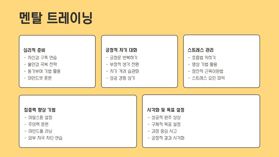 | 멘탈 준비 사항 | 경기 전략 |